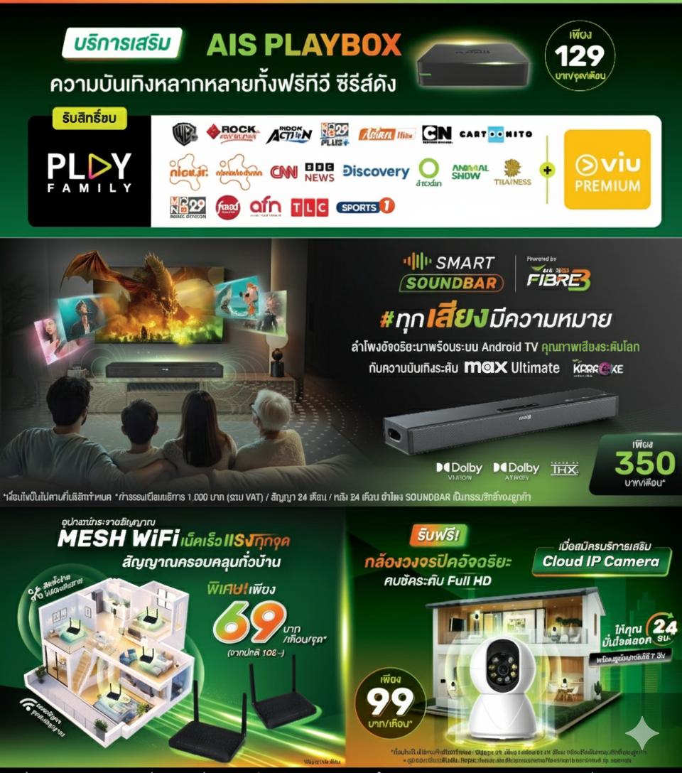แพ็กเกจสุดคุ้มเพื่อทุกคนในบ้าน! เน็ตแรง 1Gbps ทุกห้องผ่านสายไฟเบอร์ พร้อมความบันเทิงระดับพรีเมียม และเน็ตมือถือ 20GB ติดตั้งฟรีและฟรีค่าเเรกเข้า สัญญาใช้งาน24เดือน